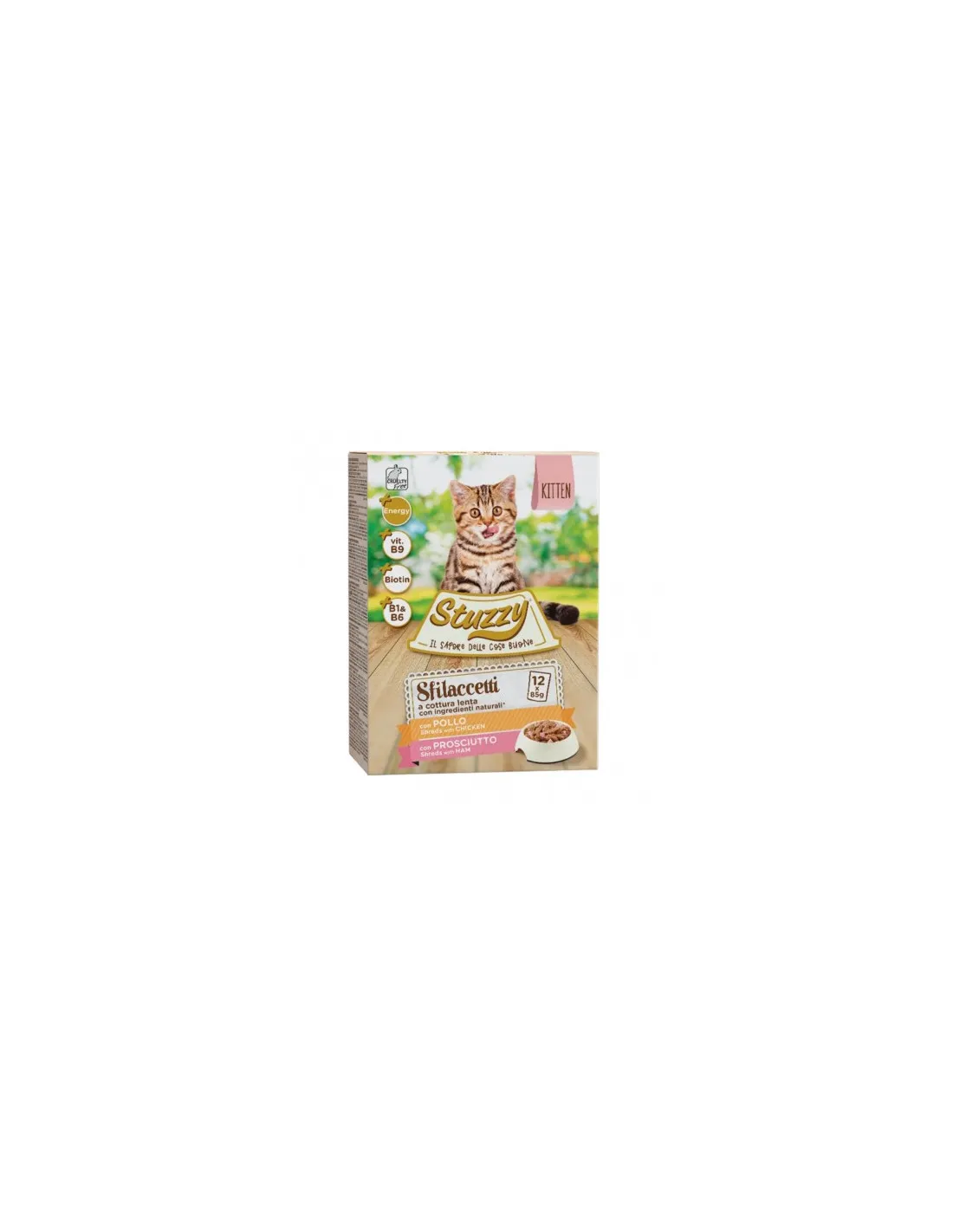 Receptura została wzbogacona kurczakiem i szynką, zapewniając wysoki procent mięsa i jego pochodnych, co pomaga zaspokoić wysokie zapotrzebowanie na białko, typowe dla dorastających kociąt. Ponadto obecność inuliny z cykorii wspomaga trawienie, a substancje mineralne i dodatki odżywcze, takie jak niezbędne witaminy i minerały, sprzyjają harmonijnemu rozwojowi i ogólnemu zdrowiu kociaka.