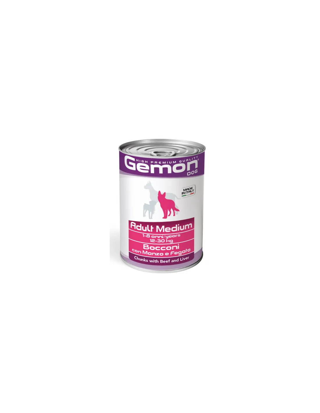 Gemon Dog Adult Medium Beef and Liver to kompletna i zbilansowana karma przeznaczona dla dorosłych psów średniej wielkości. Jego receptura łączy w sobie autentyczne smaki wołowiny i wątroby, aby zapewnić smaczny i pożywny posiłek, promujący ogólne samopoczucie i zdrowie Twojego psa.