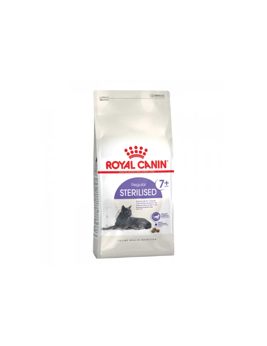Royal Canin Feline Health Nutrition Adult Sterilized 7+ to kompletna sucha karma opracowana z myślą o zaspokojeniu specyficznych potrzeb dorosłych i starszych sterylizowanych kotów powyżej 7 roku życia. Ten produkt został opracowany, aby wspierać ogólny stan zdrowia Twojego kota poprzez utrzymanie idealnej wagi i promowanie zdrowego układu trawiennego.