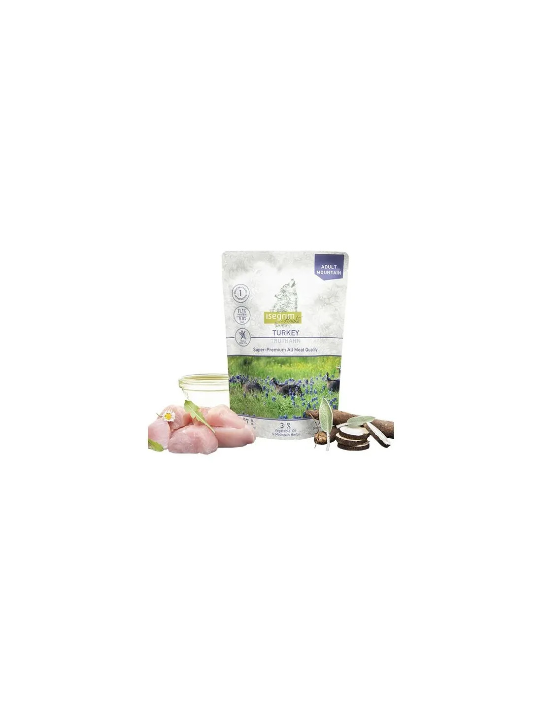 Isegrim Roots Indyk mono p.a. to wysokiej jakości mokra karma monobiałkowa dla psów, pakowana w praktyczną saszetkę o gramaturze 410 g. Produkt ten został starannie opracowany, aby zaspokoić potrzeby żywieniowe psów z wrażliwością pokarmową lub psów wymagających specjalnej diety opartej na jednym źródle białka. Indyk, główny składnik tej receptury, jest źródłem chudego i wysoce strawnego białka, idealnego do utrzymania masy mięśniowej psa bez jej obciążania.