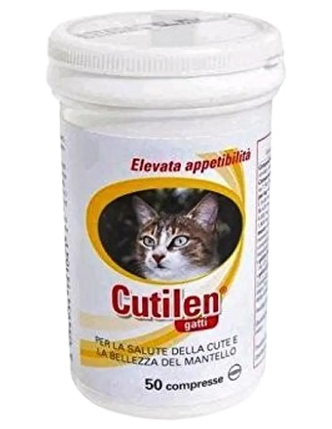 Cutilen Gatto to suplement diety opracowany specjalnie z myślą o wspieraniu zdrowej skóry i sierści kotów. Każde opakowanie zawiera 50 łatwych w podaniu tabletek, idealnych do codziennego stosowania.