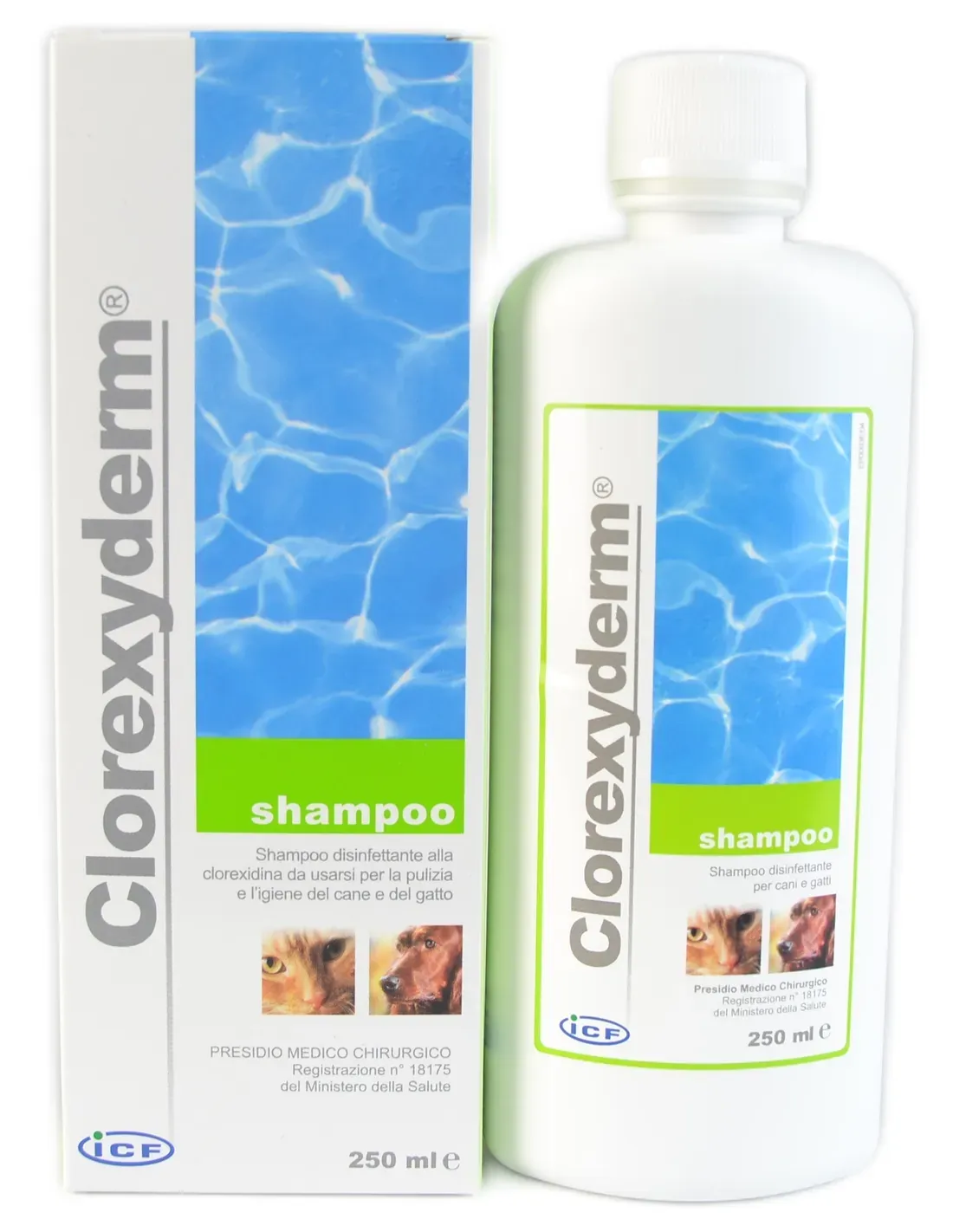 Clorexyderm to szampon dezynfekujący o szerokim spektrum działania na bazie chlorheksydyny, aktywny przeciwko bakteriom Gram-dodatnim i Gram-ujemnym.