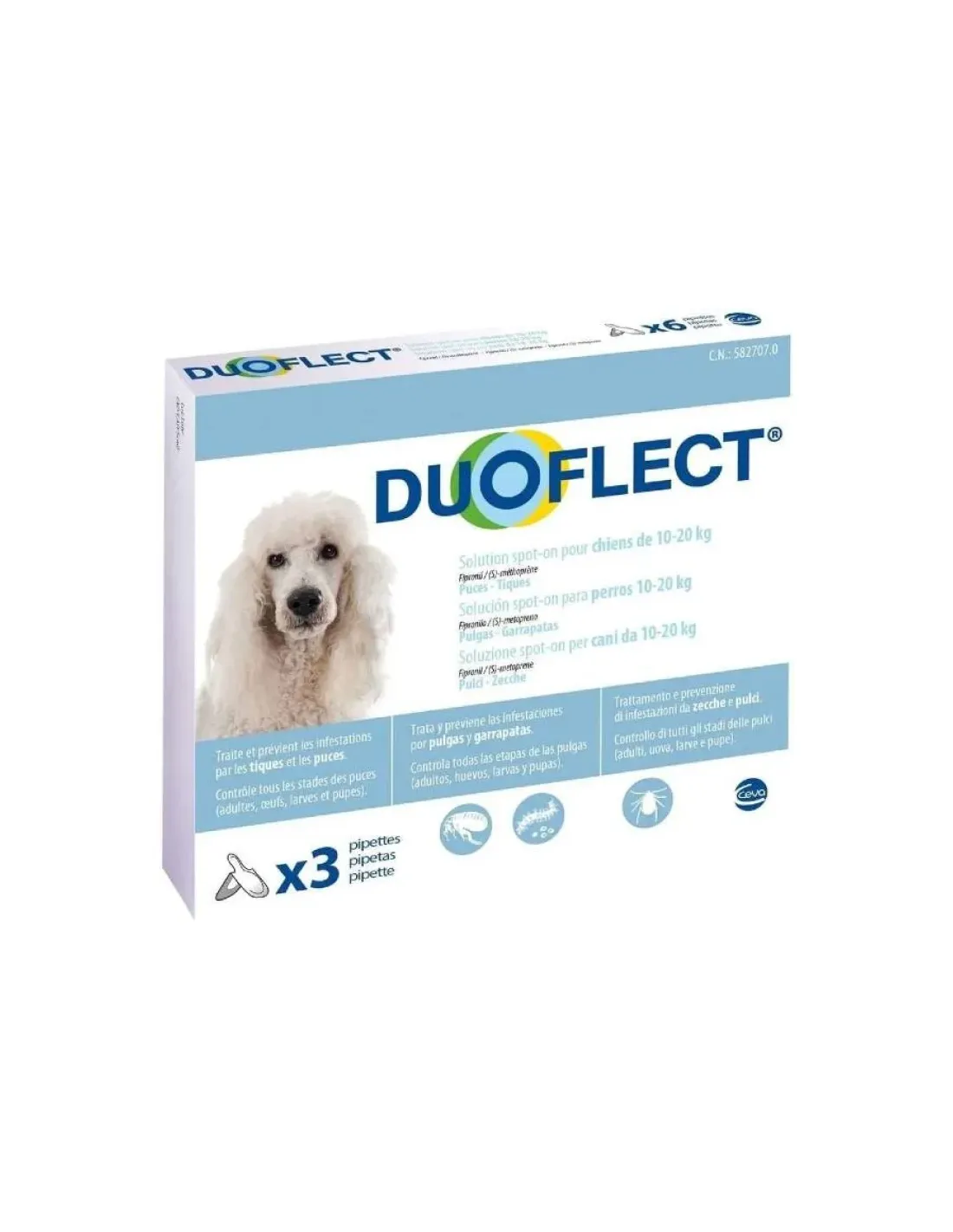 Dawkowanie: jedna pipeta na zwierzę odpowiadająca minimalnej zalecanej dawce 12 mg/kg masy ciała (m.c.) fipronilu i 6 mg/kg m.c. (s)-metoprenu. Przez: na miejscu. Sposób podawania: sposób stosowania: odłączyć jeden z blistrów od blistra. Zapobiegnie to przypadkowemu otwarciu sąsiedniego blistra, chroniąc wciąż nieotwarte pipety przed wilgocią. Otwórz blister nożyczkami. Aby uniknąć uszkodzenia pipety, tnij wzdłuż linii oznaczonej ikoną nożyczek. Ostrożnie otwórz pokrywę od obciętego końca i wyjmij pipetę. Trzymaj pipetę w pozycji pionowej. Lekko puknij, aby upewnić się, że cała zawartość cieczy znalazła się wewnątrz głównego korpusu pipety. Odegnij górny pasek pipety do tyłu. Jeśli to konieczne, możesz odłożyć pipetę. Aby otworzyć pipetę, przełam górną część wzdłuż wskazanej linii. Rozsuń płaszcz pomiędzy łopatkami, aby skóra była widoczna. Przyłóż końcówkę pipety do skóry i ściśnij ją kilka razy, aby całkowicie opróżnić zawartość i w jednym miejscu bezpośrednio na skórę. Nałożenie roztworu w pobliżu nasady szyi minimalizuje możliwość zlizania roztworu przez zwierzę. Po zastosowaniu należy zwrócić szczególną uwagę, aby wiele zwierząt nie zlizało roztworu nawzajem. Należy zwrócić szczególną uwagę, aby uniknąć nadmiernego zwilżenia włosów produktem, gdyż w miejscu zabiegu włosy będą miały lepki wygląd. Leczenie można powtarzać u psów co 6 tygodni lub w zależności od rodzaju i poziomu narażenia na pasożyty. W przypadku braku specyficznych badań leczenia nie należy powtarzać w odstępach krótszych niż 2 tygodnie.