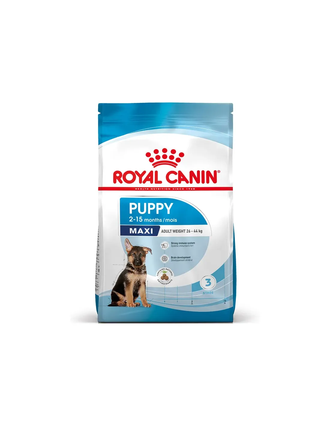 Produkt przeznaczony specjalnie dla szczeniąt ras dużych, o wadze dorosłego osobnika od 26 do 44 kg. Jest odpowiednia dla szczeniąt do 15 miesiąca życia i zapewnia pełne wsparcie żywieniowe w krytycznym okresie wzrostu. „Royal Canin Puppy Maxi” to idealny wybór dla właścicieli, którzy chcą zapewnić swojemu szczeniakowi zdrowy start w życie, pełen witalności.