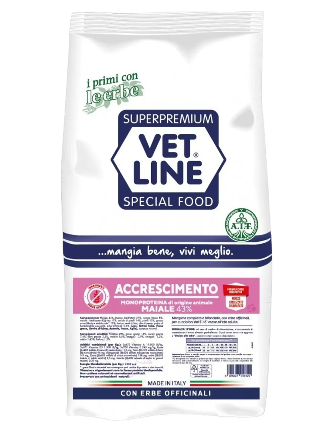 Kompletna i zbilansowana karma, zawierająca świeże mięso i aktywne zioła lecznicze, dla szczeniąt od 5/6 miesiąca życia aż do dorosłości. monoproteinowy pokarm wieprzowy.