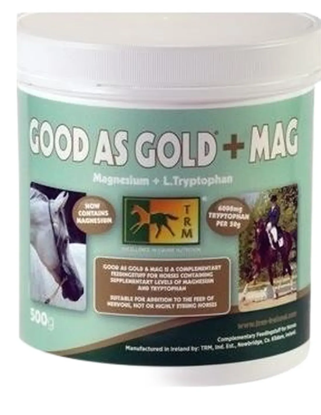 Good as Gold + MAG to suplement diety dla koni zawierający dodatkową ilość magnezu i tryptofanu, które odgrywają ważną rolę w utrzymaniu prawidłowych funkcji nerwowych. Odpowiedni dla koni nerwowych, gorących lub łatwo ulegających wpływom.