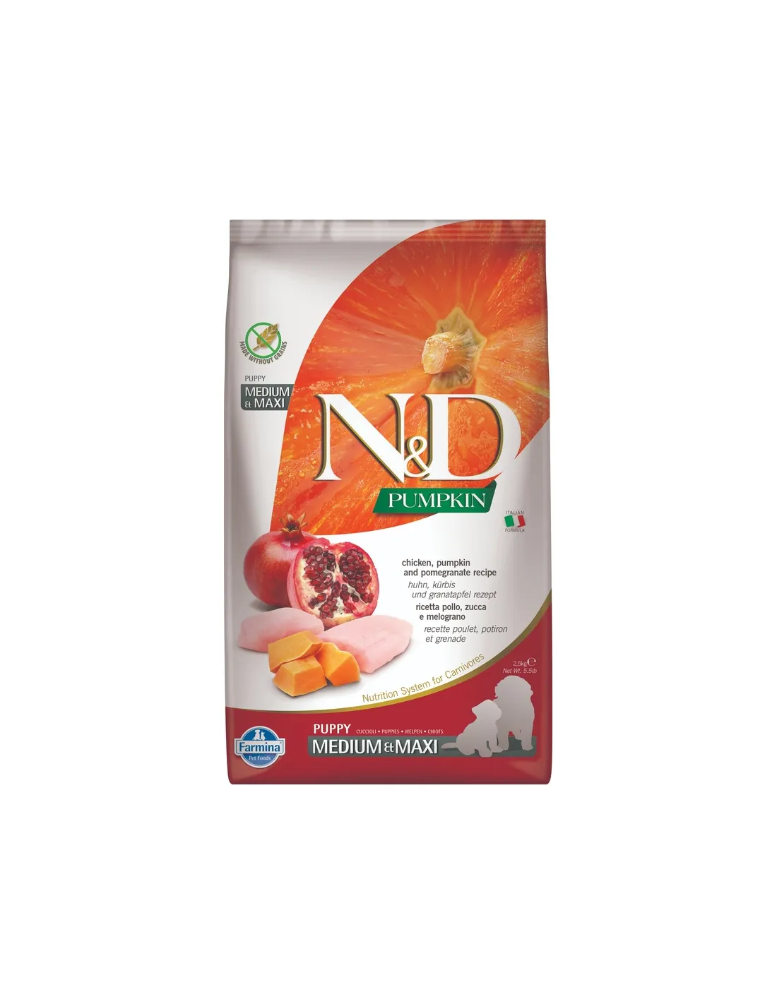 Skład krokietów Farmina opiera się na wysokiej jakości składnikach, dobranych pod kątem wartości odżywczych. Kurczak dostarcza łatwo przyswajalnego białka, a granat i dynia są źródłem witamin, minerałów i przeciwutleniaczy. Składniki łączone są w optymalnych proporcjach, aby zapewnić równowagę wszystkich niezbędnych składników odżywczych, w tym zdrowych tłuszczów, węglowodanów złożonych i błonnika. Obecność starożytnych zbóż w ograniczonych ilościach gwarantuje, że nawet psy z wrażliwością na zwykłe zboża będą mogły cieszyć się pożywnym i satysfakcjonującym posiłkiem.