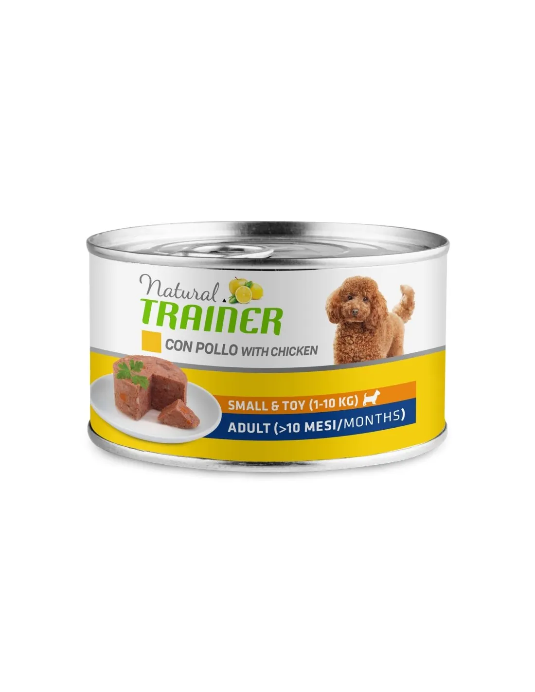 Natural Trainer Small & Toy Adult Chicken 150 gr to kompletna i zbilansowana karma, specjalnie opracowana, aby zaspokoić potrzeby żywieniowe małych i zabawkowych dorosłych psów. Produkt ten stanowi bogatą i zróżnicowaną dietę, opartą na wysokiej jakości składnikach, zapewniającą optymalne spożycie wszystkich składników odżywczych niezbędnych do codziennego dobrego samopoczucia Twojego psa.
