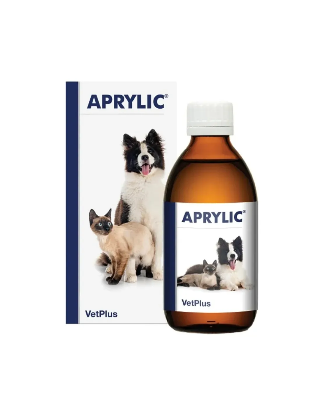 APRYLIC® to pasza uzupełniająca dla psów i kotów zawierająca średniołańcuchowe trójglicerydy (MCT), takie jak kwas kaprylowy. Dzięki swojej formule wspiera zdrowie mózgu i metabolizm energetyczny centralnego układu nerwowego. MCT są łatwo metabolizowane i przekształcane w ciała ketonowe, stanowiąc alternatywne źródło energii dla mózgu dla glukozy, przydatne w przypadku starzenia się, zaburzeń funkcji poznawczych lub epilepsji.