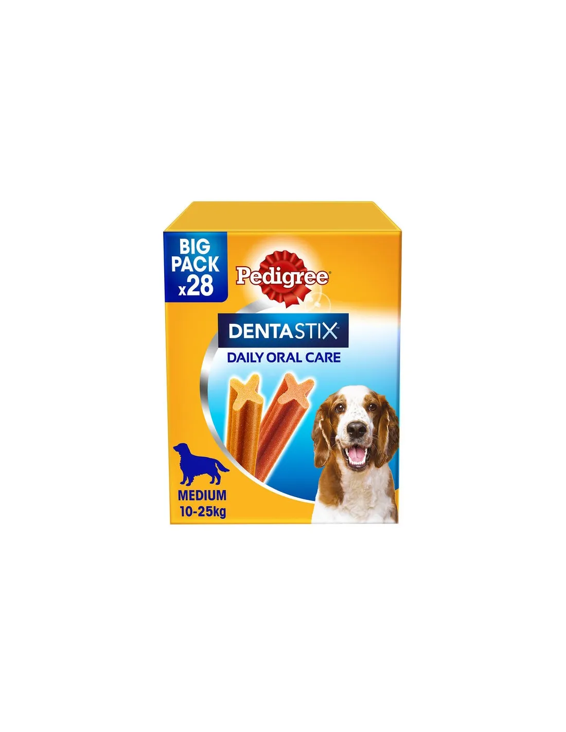 Pedigree Dentastix Fresh Medium Multi x28 to przekąska dla psów średniej wielkości, o wadze 10-25 kg. Ten produkt został zaprojektowany, aby pomóc w utrzymaniu zdrowia jamy ustnej Twojego zwierzaka, zapewniając smaczny i przyjemny sposób czyszczenia zębów psa.