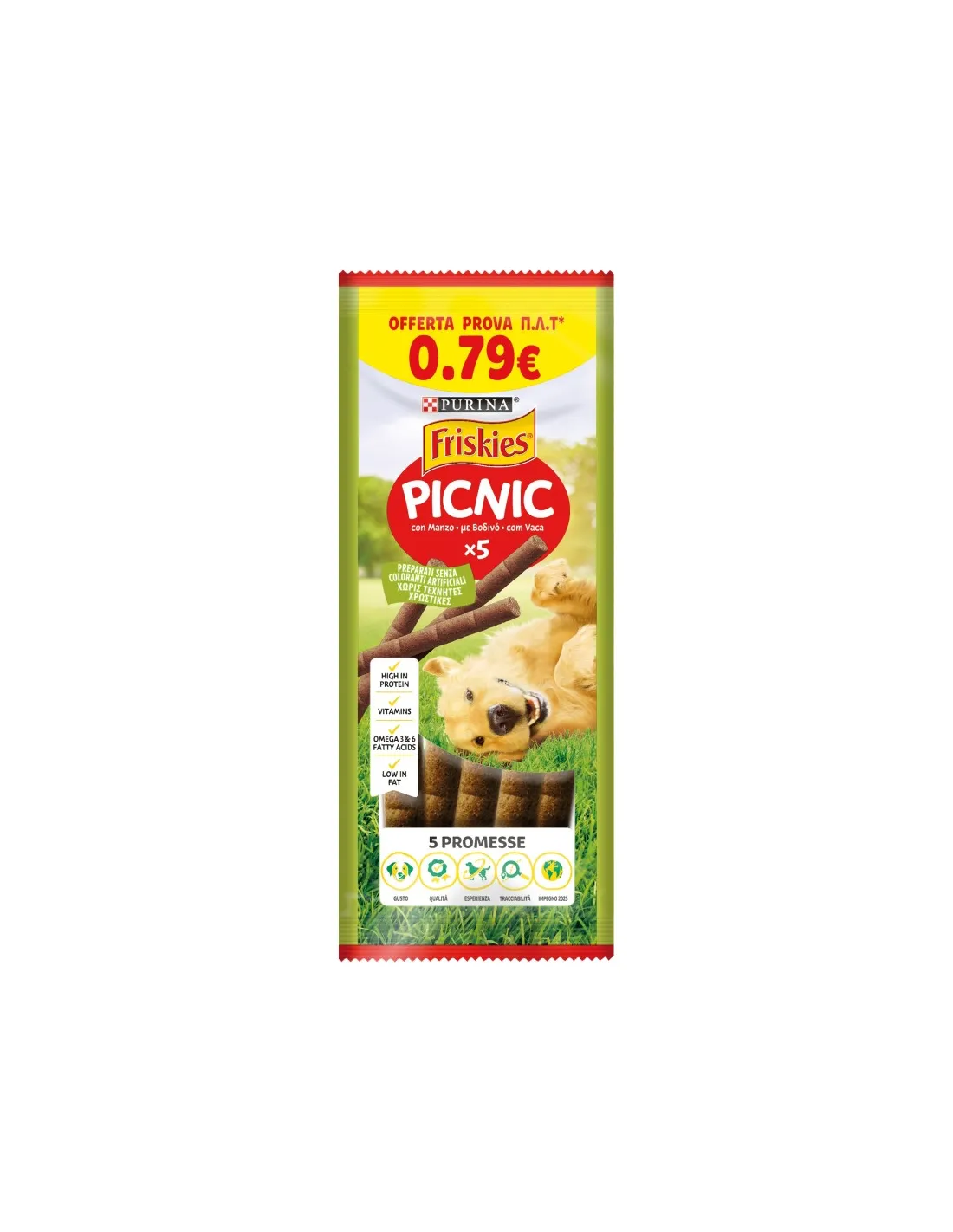 Friskies Picnic Beef jest odpowiednia dla psów wszystkich ras i w każdym wieku. Można go stosować jako przekąskę między posiłkami lub jako nagrodę w trakcie treningu. Należy pamiętać, że smakołyki powinny stanowić jedynie niewielką część całkowitej diety Twojego psa.
