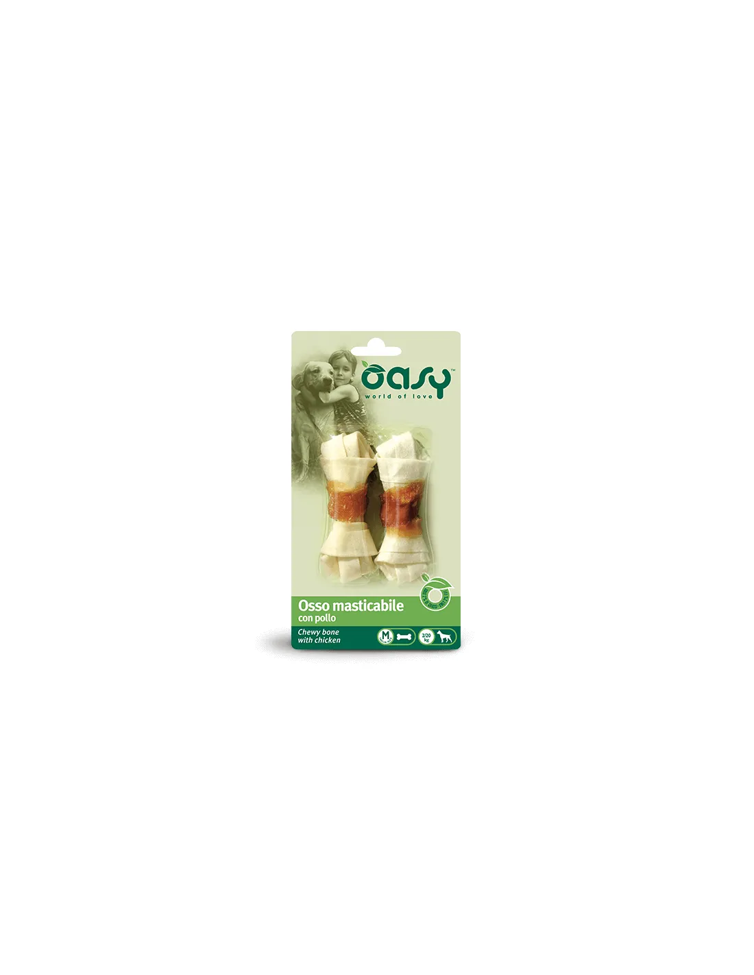 Oasy Dog Snack Chewable Bone Chicken Size M 56G to przekąska dla psa w kształcie kości, przygotowana z kurczaka, idealna dla psów średniej wielkości. Ta przekąska nie tylko zaspokaja naturalną potrzebę żucia psa, ale także przyczynia się do czyszczenia zębów i utrzymania zdrowych dziąseł. Produkt dostępny w opakowaniach po 56 gramów.