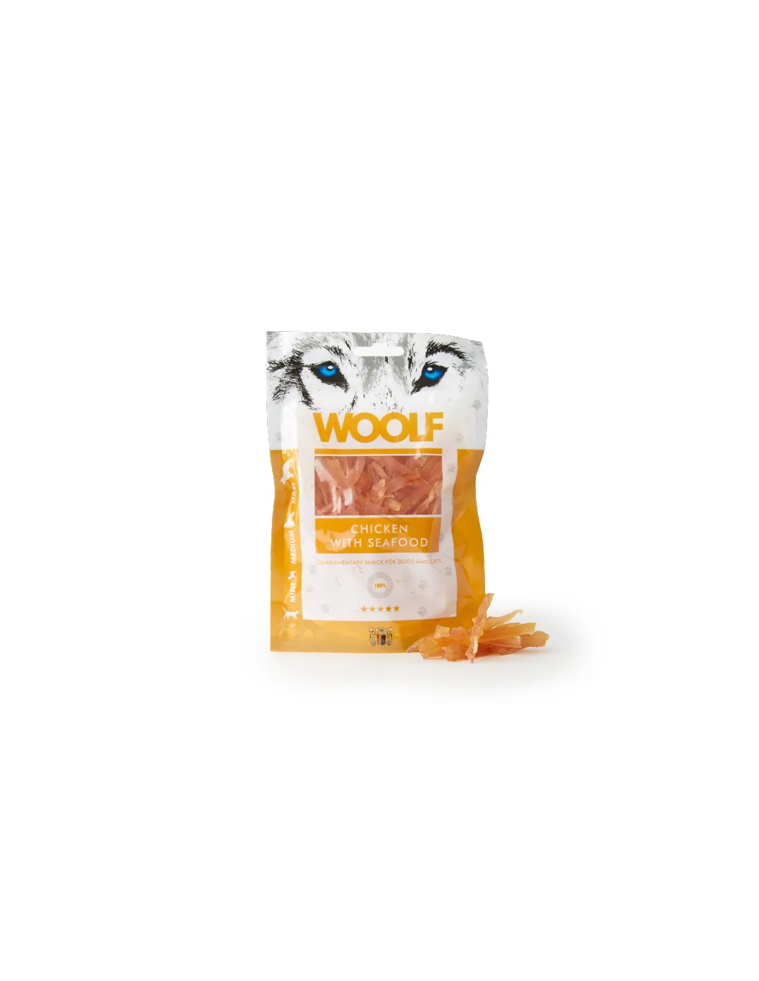 WOOLF Perro, Chicken Strips and Seafood Snack to wysokiej jakości przekąska dla psów, idealna dla każdej wielkości. Ta przekąska, sporządzona z wyselekcjonowanych składników, łączy w sobie pyszny smak kurczaka z niepowtarzalnym smakiem owoców morza, oferując wyjątkowe doznania smakowe Twojemu czworonożnemu przyjacielowi.