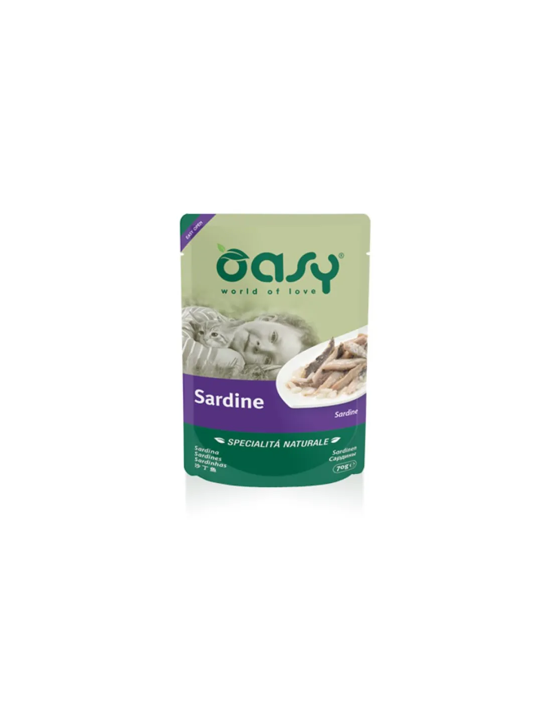 More Love Sardynki z Warzywami marki Oasy to mokra karma uzupełniająca dla dorosłych kotów, która łączy w sobie nieodparty smak sardynek ze świeżością warzyw. Potrawa ta została starannie przygotowana, aby zadowolić najbardziej wymagające podniebienia, oferując naturalne i zdrowe doznania kulinarne. Receptura nie zawiera glutenu, GMO i soi, nie zawiera sztucznych barwników, aromatów ani konserwantów, co zapewnia Twojemu kotu bezpieczny, wysokiej jakości posiłek. Wersja 70 g jest idealna na pojedynczą porcję, gwarantując za każdym razem świeżość i smak.