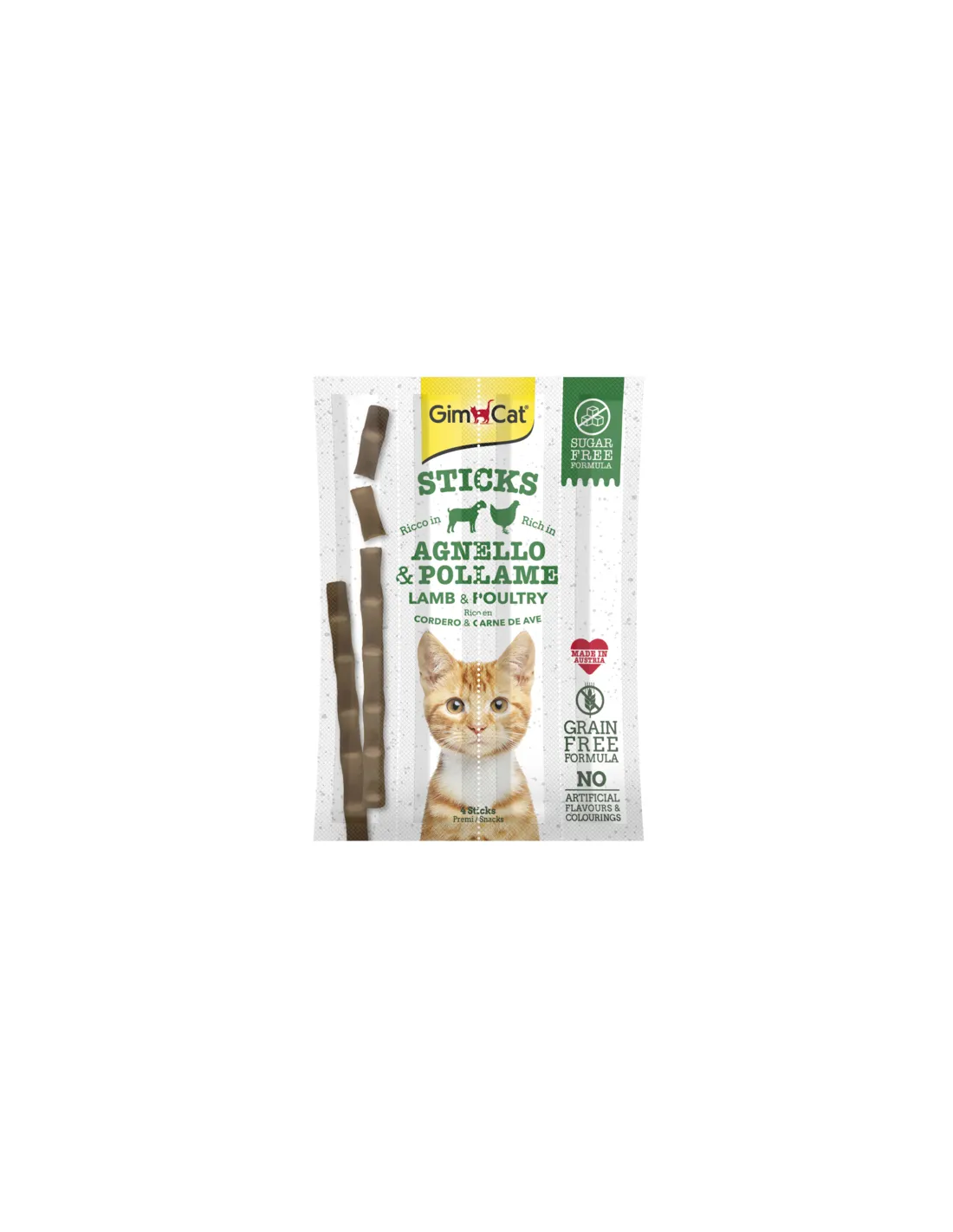Gimcat Sticks Lamb and Poultry 4 Sticks Snack for Cats to pyszna przekąska dla dorosłych kotów. Te paluszki o smaku jagnięciny i drobiu są pakowane w opakowania po 4 x 20 g, dzięki czemu nadają się jako przysmak dla Twojego kociego przyjaciela.
