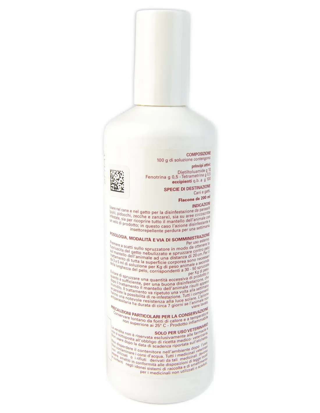 Zaleca się stosowanie u psów i kotów w celu zwalczania pasożytów (pcheł, wszy, kleszcze i komary), zarówno na ograniczonych obszarach porażonych, jak i do pokrycia całej sierści zwierzęcia zasłoną produktu; w tym przypadku działanie dezynfekcyjne i odstraszające owady utrzymuje się przez tydzień.