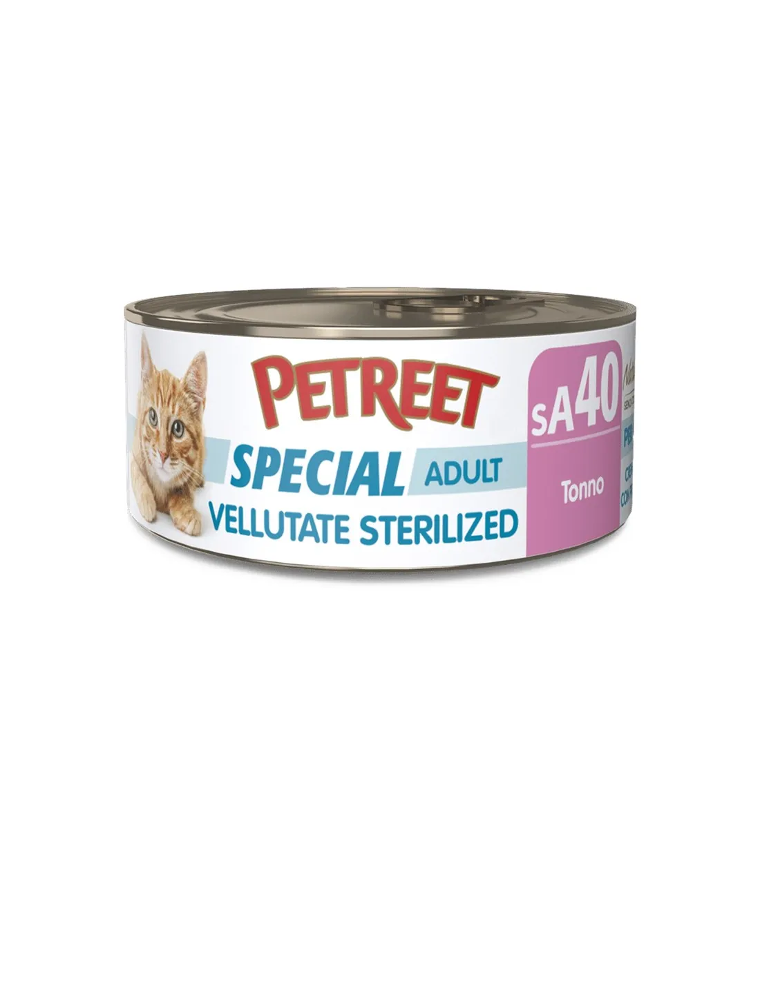Petreet's Sterilized Tuna Creams to kompletna i zbilansowana karma, idealna dla sterylizowanych kotów, które potrzebują specjalnej diety, aby utrzymać prawidłową wagę i zapobiec częstym u tych zwierząt problemom z moczem i nadwagą. Formuła została opracowana tak, aby zapewnić wszystkie składniki odżywcze potrzebne w codziennej diecie, dbając o dobre samopoczucie wysterylizowanego kota. Obecność błonnika w proszku celulozowym pomaga kontrolować uczucie głodu i zachować zdrowie przewodu pokarmowego.