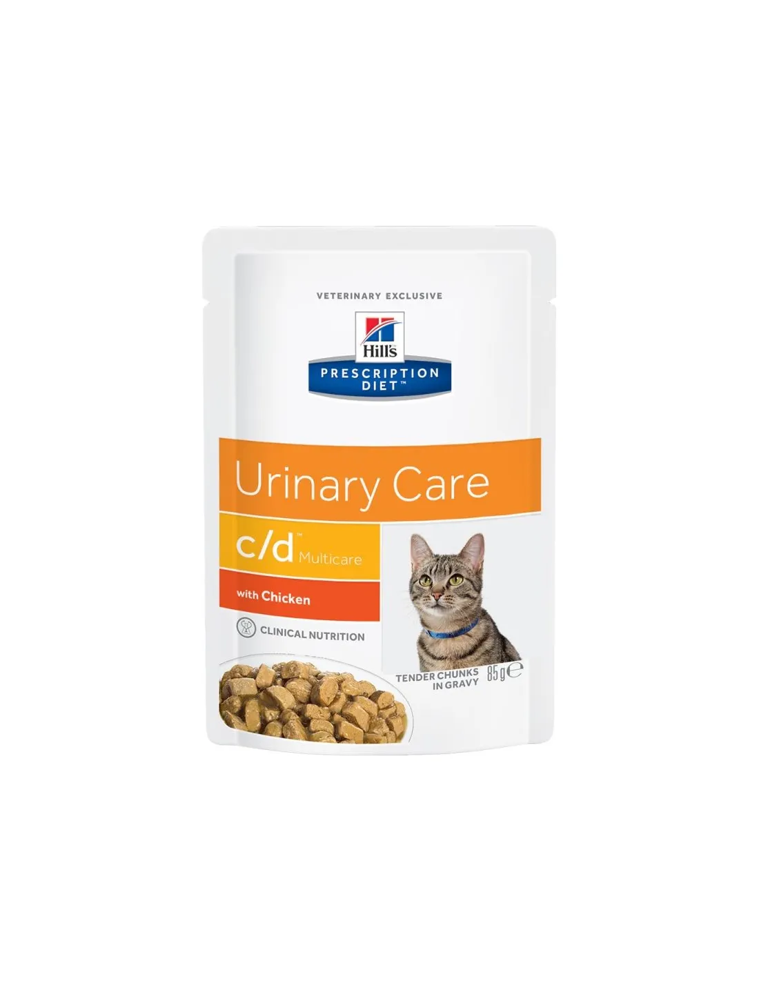 Hill's Prescription Diet C/D Multicare Urinary Care to mokra karma dla kotów. Jego unikalna formuła ma na celu wspieranie zdrowia układu moczowego u kotów, pomagając w zakwaszaniu moczu i zmniejszając ryzyko tworzenia się kamieni struwitowych i szczawianowo-wapniowych.