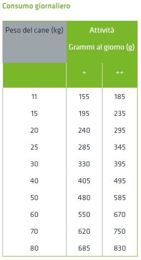 proteina grezza 23%, grassi grezzi 13%, fibre grezze 3%, ceneri grezze 6,5%, magnesio 0,1%, omega-3 1,5%.